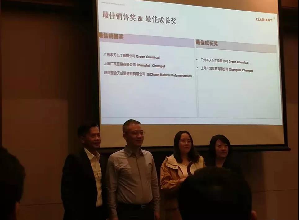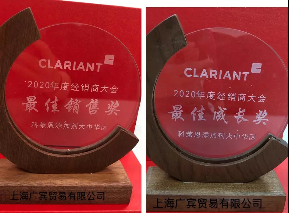 颁奖仪式上,上海广宾荣获2019年度科莱恩添加剂大中华区"最佳销售奖"、"最佳成长奖"两项殊荣。