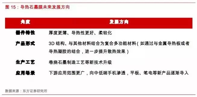 随着5G时代临近,电子产品对热管理方案有着更高的要求,因此对导热石墨膜材料将提出更多新的要求,围绕导热器件特性、产品形式、生产工艺、应用领域拓展等方面均有更高的要求,具备材料生产工艺升级与应用领域创新并重的发展趋势。