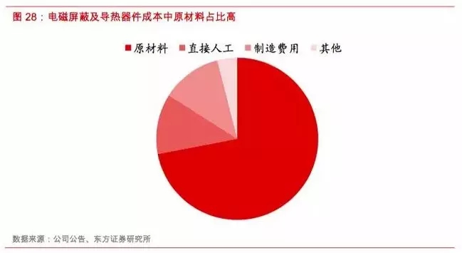 同时,电磁屏蔽和导热材料生产环节毛利率一般高于器件加工环节,因此深耕材料环节的公司有望获得高于下游的毛利率水平,而同时具备材料生产与器件加工的公司毛利率水平也有望高于普通的器件加工厂商。