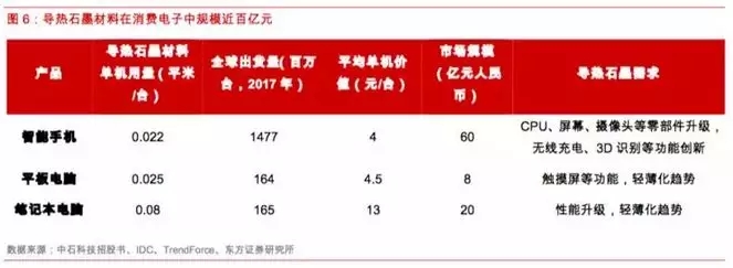 而属于新兴行业的石墨散热材料,自2011年开始大规模应用于消费电子产品中以来,近年呈现快速发展趋势,按照150-200元/平米的单价来计算,当前高导热石墨材料在消费电子领域的市场规模达近百亿元人民币。