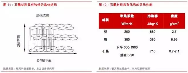 高导热石墨膜的石墨材料因其碳原子结构具有独特的晶粒取向,具备非常优异的平面导热性能,大大高于一般纯铜的导热系数,其片层状结构可很好地适应任何表面,同时具有密度低(轻量化)、高比热容(耐高温)、长期可靠等优点,成为散热解决方案的优秀材料。因此近年来高导热石墨膜在智能手机、超薄笔记本电脑、平板电脑和LED电视等消费电子产品领域均有广泛应用。