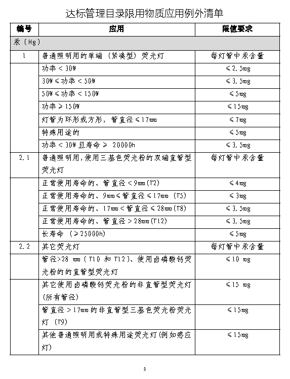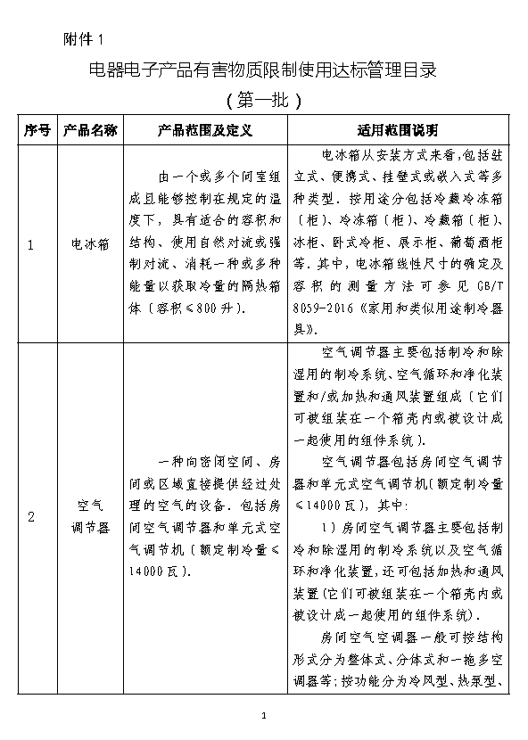 附件1:电器电子产品有害物质限制使用达标管理目录(第一批)
