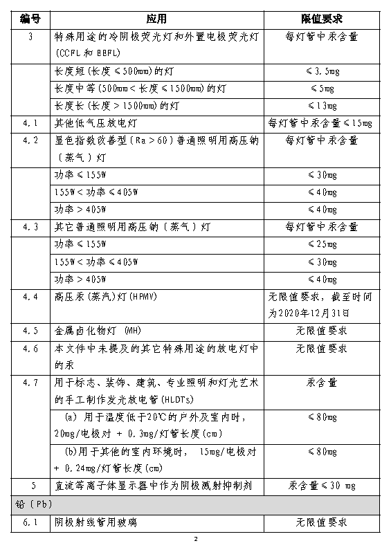 2. 针对某些用途的产品,放宽限值要求;