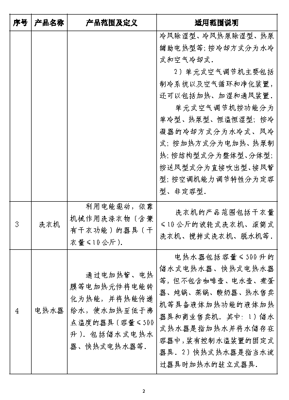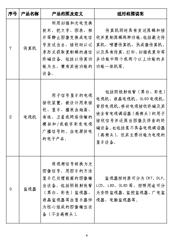 电冰箱、空气调节器、洗衣机、电热水器、打印机、复印机、传真机、电视机、监视器、微型计算机、移动通信手持机、电话单机