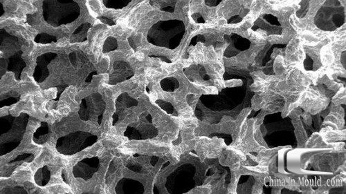 正如它名字中所提到的,金属泡沫中拥有很多孔状结构,含有大量的气体填充间隙,所以在保证高强度的同时,重量也十分轻。这种材料可以应用在义肢骨骼的关节,也适合作为汽车减震器使用。