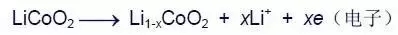 开始充电后,正极材料失去电子,锂离子从正极材料中脱嵌而出↓