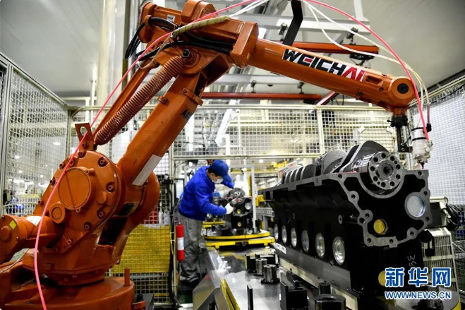 ▲在位于山东潍坊的潍柴集团一号工厂总装车间,工人们在流水线上装配发动机(3月19日摄)。3月31日,国家统计局服务业调查中心、中国物流与采购联合会发布数据,3月份,中国制造业采购经理指数(PMI)为52%,比上月回升16.3个百分点。新华社记者 郭绪雷 摄