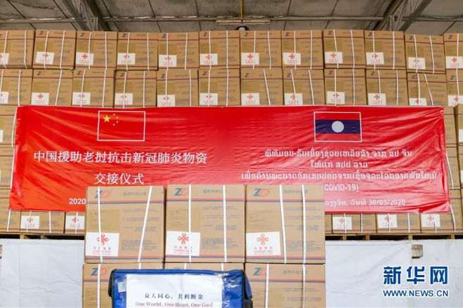 ▲这是3月30日在万象拍摄的中国政府援助老挝抗击新冠肺炎物资。当日,中国政府援助老挝抗击新冠肺炎物资交接仪式在老挝首都万象举行。物资包括医用防护服、口罩、检测试剂盒等,分三批运抵老挝。新华社发(凯乔 摄)