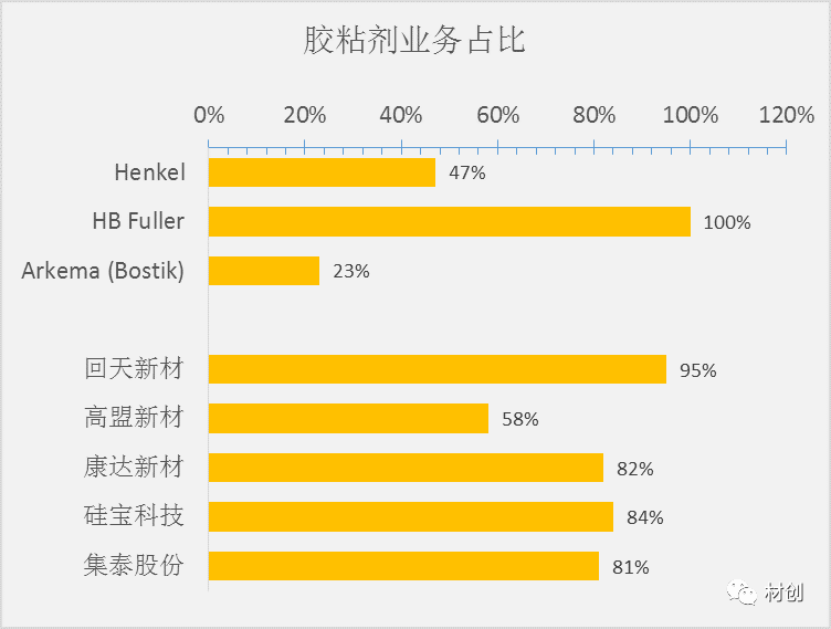 图1:胶粘剂上市公司中胶粘剂业务占比