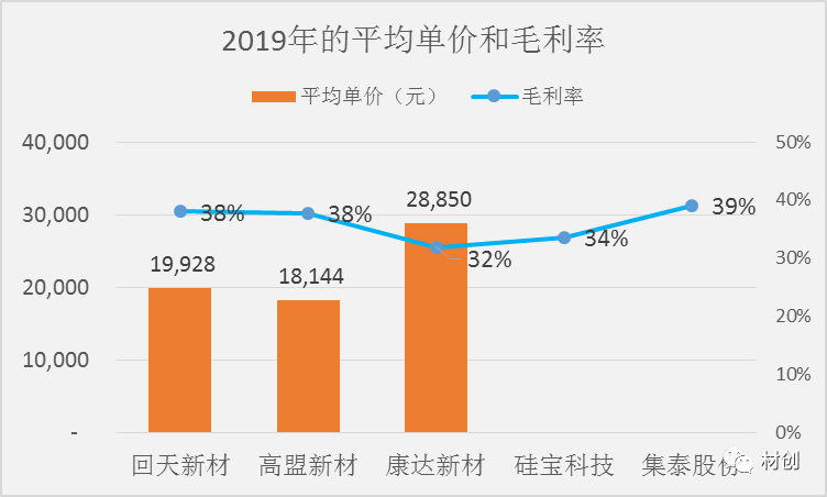 按照其年报公布的销售额和销量,可以计算出回天新材胶水的平均价格为2万元/吨(以有机硅胶为主),高盟新材的价格为1.8万元/吨(为聚氨酯胶),而康达新材的平均价格高达2.9万元/吨(主要为环氧和聚氨酯),甚至高于回天有机硅胶水价格,但在高平均售价下毛利率依然稍低,仅为32%。这一价格较为神奇,需要进一步挖掘解析。