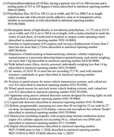 此次获得有效期延长至2020年12月31日的共涉及11个税号14个品项商品。具体如下: