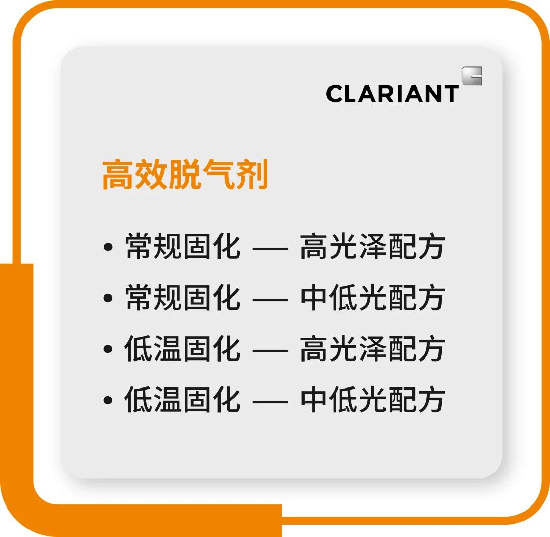 科莱恩匠心打造的“粉末涂料大会云展厅”,包含粉末涂料高效脱气剂、砂纹剂、抗划伤耐磨蜡助剂、分散加工蜡助剂、耐候耐热保护助剂五大功能。